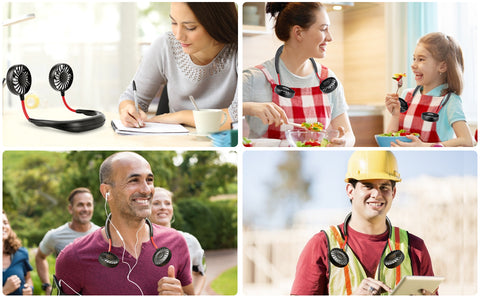 This Dual Cooling Mini Neck Fan is designed as a headphone to free your hands while enjoying the breeze; It is suitable for traveling in hot weather and it is very fashionable.